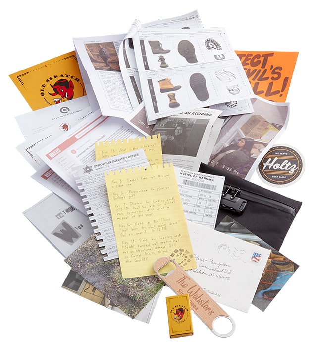 Challenge yourself by channeling your inner detective to investigate the murder at the Old Scratch Tavern. Uncover the motives of each suspect through ciphers, clues, and puzzles that progress the story to its thrilling conclusion. Realistic evidence and documents guide players through a challenging and immersive experience with tons of twists and turns.