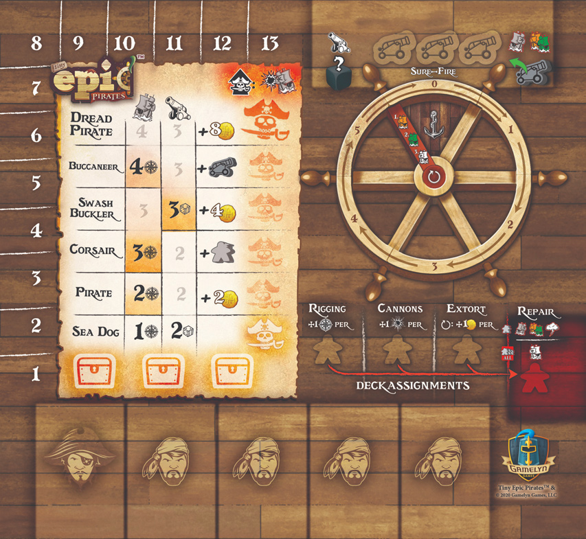 The Tiny Epic Pirates game mat is a 26″ × 26″ slip-resistant neoprene gaming mat. The set of player mats includes four 8.75″ × 9.75″ slip-resistant neoprene player gaming mats. Keep your scallawags in check!