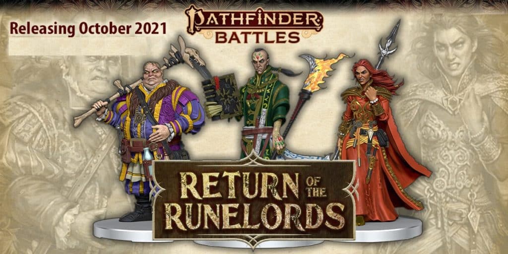 Pathfinder Battles: Return of the Runelords includes 14 all-new miniatures representing seven of the most iconic villains of Pathfinder’s Lost Omens setting—the runelords of ancient Thassilon—as well as seven magical runewells, each keyed to a deadly sin!